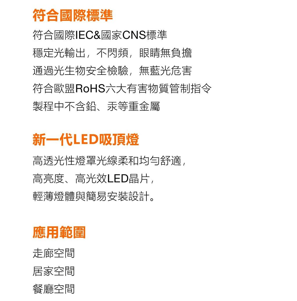 ・選用高品質壓克力磨砂燈罩,透光率達80%增加光線漫反射,有效降低眩光