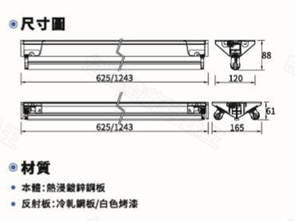 產品規格 ・電壓輸入:100-240V ・額定功率:10W/20W/40W ・尺寸 : 2呎單管 L625 x W120 x H88mm 2呎雙管 L625 x W120 x H88mm 4呎單管 L625 x W120 x H88mm 4呎雙管 L625 x W120 x H88mm 產品特色 ・LED燈管光源,可替換式設計 ・內置安定器高效燈管 ・及時點亮 ・無鉛無汞 ・低光衰,無藍光 ・高演色性,色彩鮮豔不失真