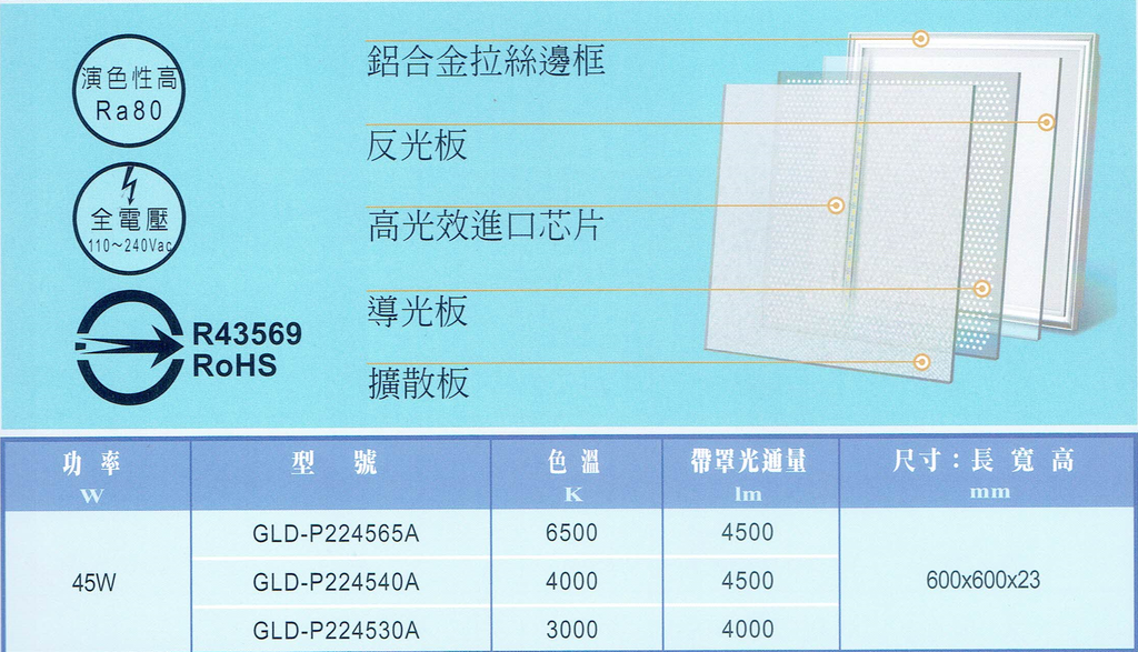 寶島之光 | LED平板燈 | 輕鋼架 | 直下式 | 45W