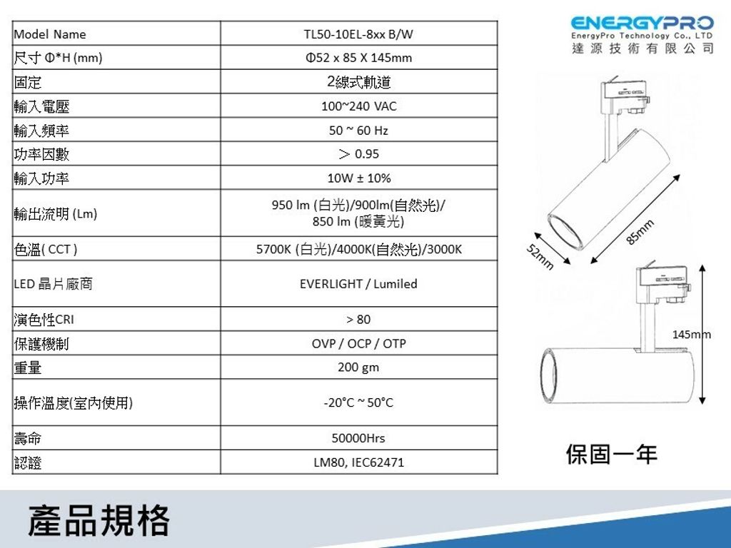 ・色溫:3000K (暖白光) / 4000K (自然光) / 5700K (白光)
