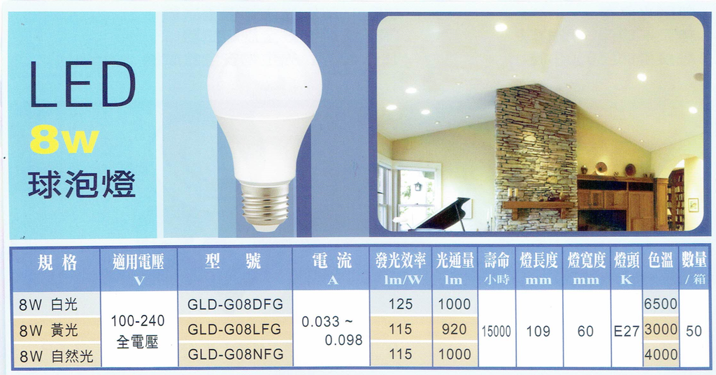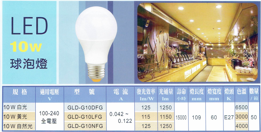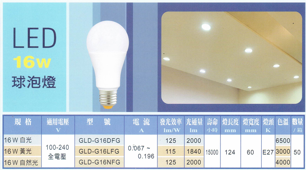 ・色溫:3000K (暖白光) / 4000K (自然光) / 6500K (晝白光)